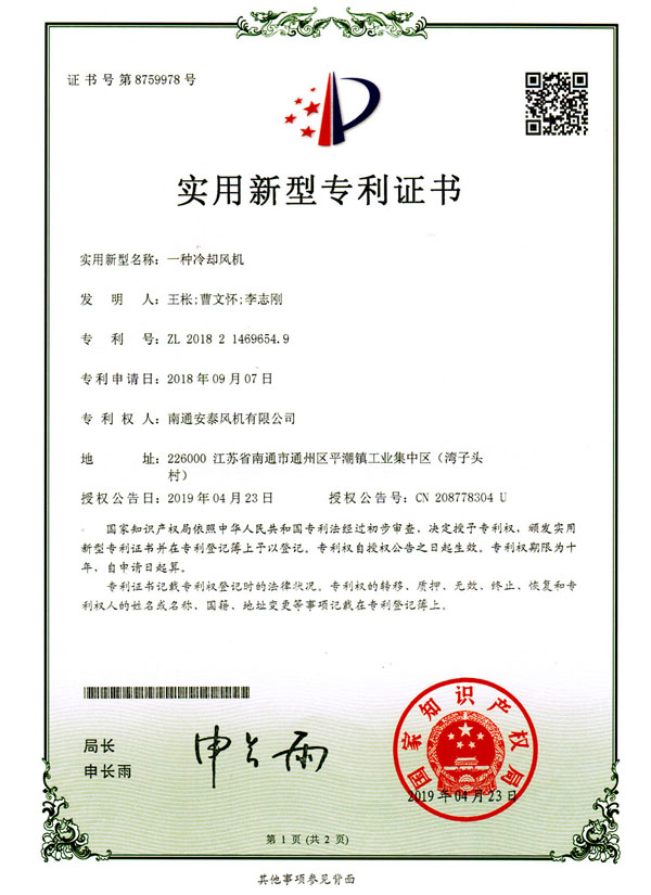 安泰風(fēng)機(jī) >> 資質(zhì)證書 >> 一種冷卻風(fēng)機(jī)